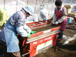 ビートの育苗の際、床土を砕き細かくとおし、ふわふわの土にする作業機です。