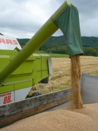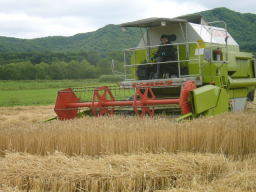 その組合内で、この作業機を運転するオペレーターや刈り取った小麦をJAの乾燥調整施設に運搬する人など役割分担しながら、効率よく迅速に収穫作業を進めていくの一般的です。