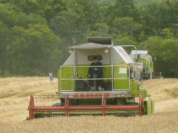 小麦を、刈り取り、脱穀する自走式の大型作業機です。