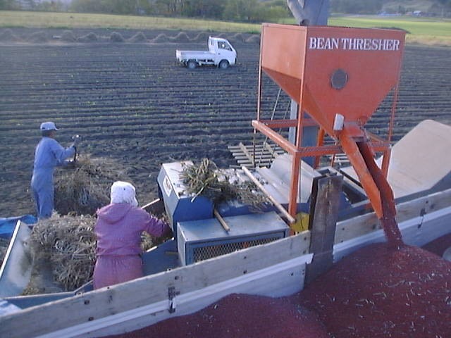 あずきの脱穀風景